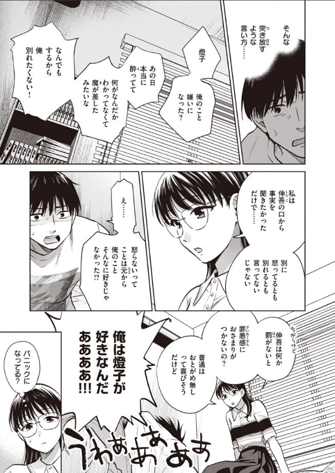 「これから一ヶ月、伸吾(しんご)は私に触るの禁止」彼女の燈子(とうこ)に浮気がバレてしまった……!!それにも関わらず冷静で怒らず咎めようともしない彼女に対し伸吾は自ら罰を求めるのだが……待っていたのは焦らされまくりの寸止めおしおき愛撫だった!!