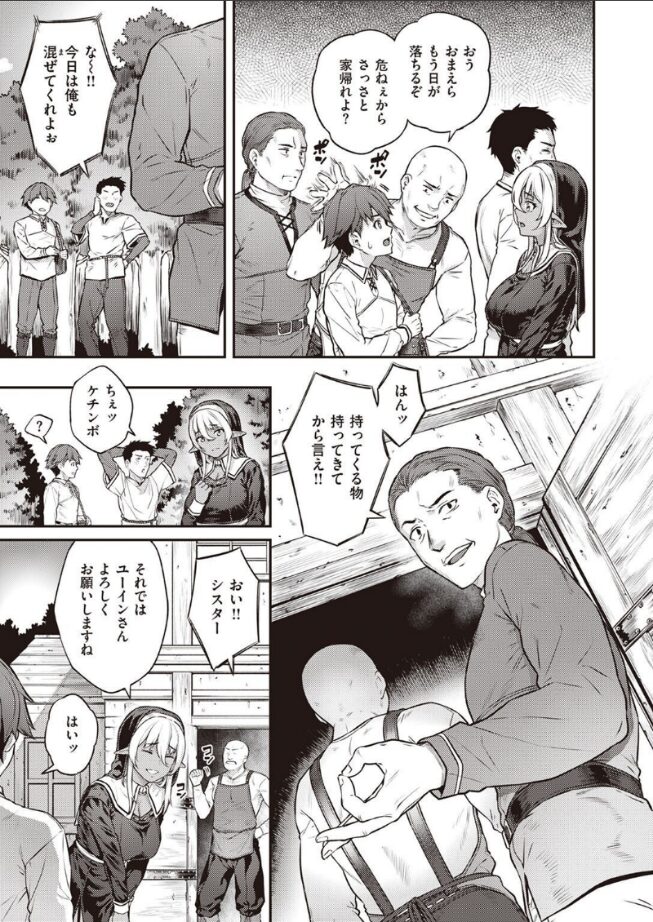 ――エルフと人間では子を孕むことができない。種族の特性を利用され毎夜村人たちに穢され続けている褐色エルフシスターのララノア。整った顔にイヤらしいカラダつき。特に豊満すぎるバストは、村中の男たちを虜にするにはあまりに十分すぎた。すべてはお布施の見返りと信仰の維持のため……神父からも黙認され泣く泣く男たちの欲望を受け入れる日々。けれどある日、普段から優しく接してくれている村の青年ユーインが止めに入ってくれのだが……?
