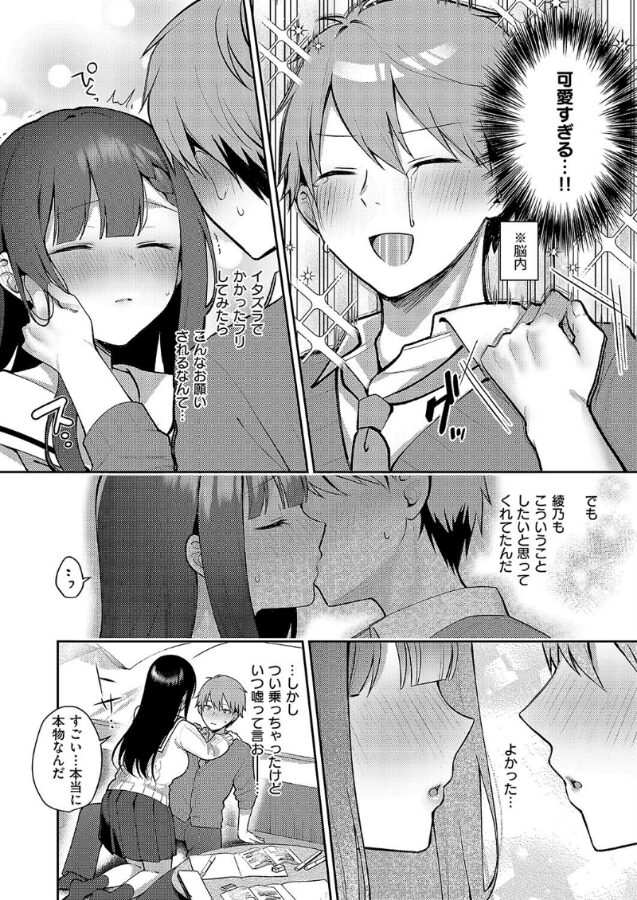 恥ずかしがり屋な可愛い恋人・綾乃とどうにかエッチをしたい俺は、ある日彼女から『催●アプリ』の話を聞く。そのアプリにイタズラでかかったフリをした俺に、綾乃はキスをしてほしいと命令!!幸せな状況に感動していたのもつかの間、彼女の命令はおっぱいを舐めさせたり、フェラをしたりとどんどん過激になっていって!?期待の大型新人・ぽんたろ先生が描く、清楚系カノジョに好きなようにされちゃうなんちゃって催●セックス♪