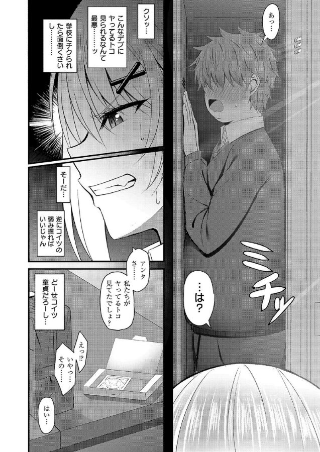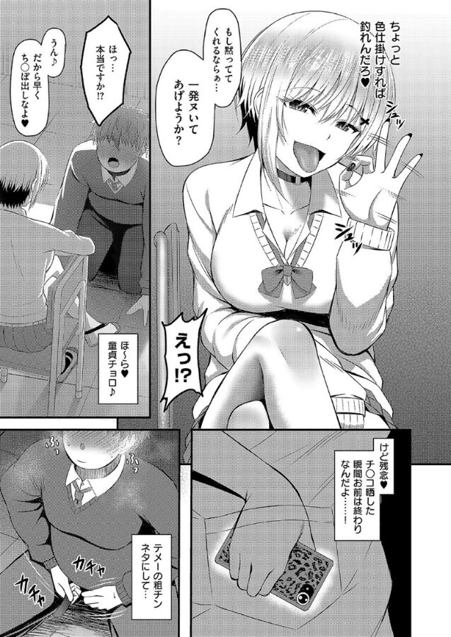 彼氏とのSEXをクラスの同じクラスの陰キャに見られてしまったJKギャル・乃愛。乃愛は仕返しとしてチ○コの写真を撮って晒してやろうと画策するも、あまりの巨根に驚かされてしまう。写真だけではネタとして弱いと思った乃愛は射精するところを撮ってやろうと足コキをするが、さらにチ○コは大きくなっていきーー!!?快楽SEXの鬼才・白水ミュウタ先生がE×E初登場!