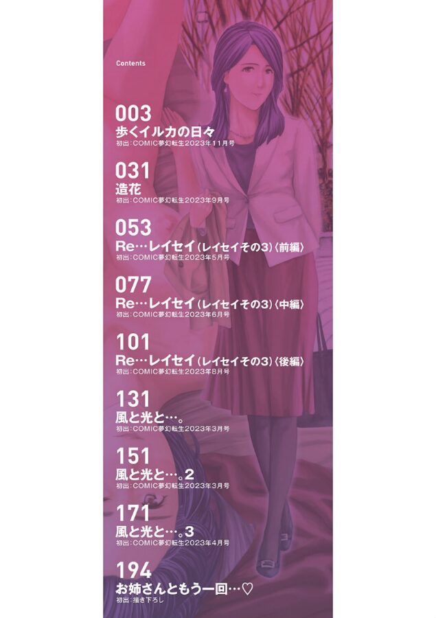【第1話試し読み付き!!】いいよ…生で…入れて?女教師、母の友人、OL、上司の娘さん。5人の美女たちは羞恥の表情で股を開いて…。男子学生・亨は元担任教師で現在楽団員の名美と不倫関係。だが亨は日本史の教師・舞咲とも関係を盛ってしまう。二人の美女の間で心が揺れる透打だったが…。「Re…レイセイ」(全3話)OL美穂は友人と深酒の末、バーのバイト店員・渡を誘い家飲みする。友人が酔いつぶれてしまい、その隙に美穂と渡は身体を重ねる。アラフォーの美穂と学生の渡。2人はお互いの肉体に溺れていくが…。「歩くイルカの日々」艶めかしい肉体!! 情動溢れるエロス!!美女濃厚な8作品に加えて描きおろし漫画収録!!【収録作品】歩くイルカの日々造花Re…レイセイ〈全3話〉風と光と…。〈全3話〉お姉さんともう一回…◇【配信特典】・超美麗!! カバーイラスト カラー原画・超貴重!! 紙書籍発売時の書店用特典イラスト